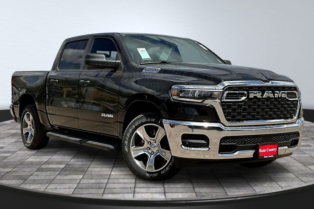 This 2026 Ram 1500 Tradesman in Diamond Black Crystal Pearlcoat comes with the following features: 3.6L V6 24V VVT 8-Speed Automatic RWD Chrome Appearance Group (Bright Front Bumper, Bright Rear Bumper, Chrome Headlamp Bezels, Grille Surround 1 Chrome Texture 1 Black, RAM Grille Badge - Chrome, and Wheels: 18" x 8" Cast-Aluminum Painted), Quick Order Package 23A Tradesman, Tradesman Level 1 Equipment Group (2nd Row in Floor Storage Bins, Cloth Bench Seat, Front and Rear Floor Mats, Rear Power Sliding Window, and SiriusXM Satellite Radio), Trailer Tow Group II (Accent Color Tailgate Handle, Trailer Brake Control, Trailer Reverse Steering Control, and Trailer Tire Pressure Monitoring System), 3.21 Rear Axle Ratio, 4-Wheel Disc Brakes, 48V Belt Starter Generator, 6 Speakers, ABS brakes, Air Conditioning, AM/FM radio, Apple CarPlay/Android Auto, Auto High-beam Headlights, Black Exterior Mirrors, Brake assist, Bridgestone Brand Tires, Compass, Delay-off headlights, Driver door bin, Dual front impact airbags, Dual front side impact airbags, Electronic Stability Control, Exterior Mirrors with Heating Element, Front anti-roll bar, Front Center Armrest, Front License Plate Bracket, Front reading lights, Front wheel independent suspension, Fully automatic headlights, Heated door mirrors, Heavy Duty Vinyl 40/20/40 Split Bench Seat, Illuminated entry, Low tire pressure warning, Manual Folding Exterior Mirrors, Manufacturer's Statement of Origin, Mopar Black Tubular Side Steps, Occupant sensing airbag, Outside temperature display, Overhead airbag, Overhead console, Panic alarm, ParkView Rear Back-Up Camera, Passenger door bin, Passenger vanity mirror, Power door mirrors, Power steering, Power windows, Radio data system, Radio: Uconnect 5 W with 8.4" Display, Rear anti-roll bar, Rear step bumper, Remote keyless entry, Speed control, Supplier Part Tracking (J-1), Tachometer, Telescoping steering wheel, Tilt steering wheel, Traction control, Variably intermittent wipers, Voltmeter, Wheels: 18" x 7.5" Steel Painted, and Wheels: 20" x 9.0" Aluminum Polished Painted. Price includes: $1000 - 2026 Southwest BC State of Texas Regional Bonus Cash . Exp. 04/30/2026 $3500 - 2026 National Retail Bonus Cash . Exp. 04/30/2026 $500 - 2026 National 2026 First Responder Bonus Cash . Exp. 01/04/2027