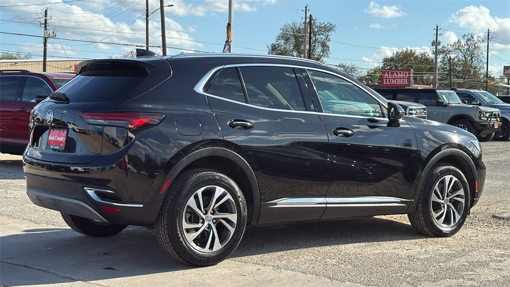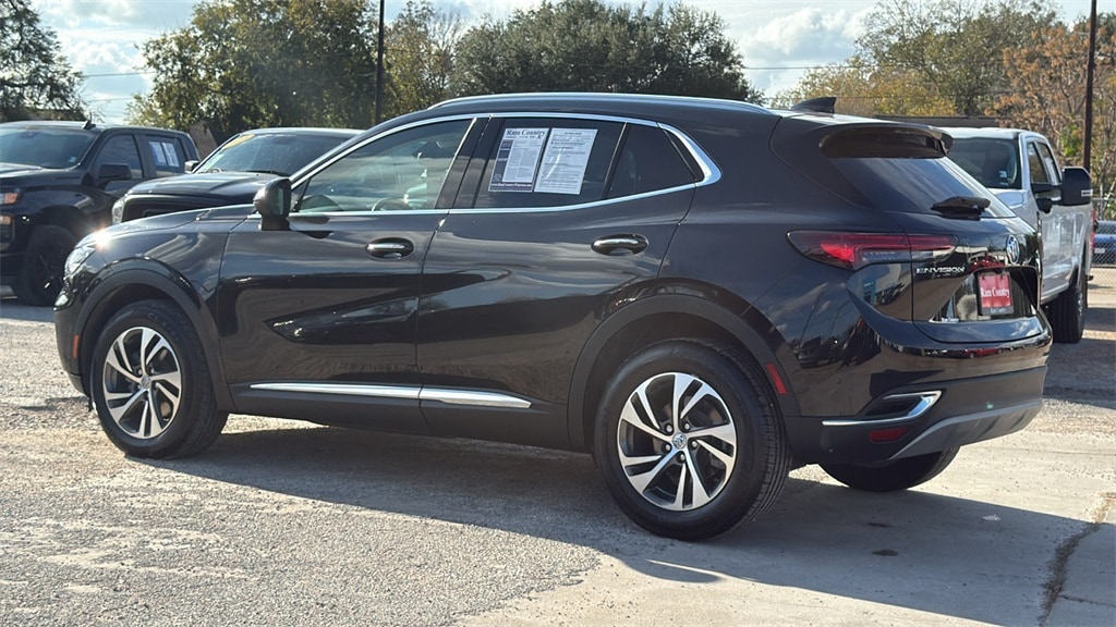 This 2023 Buick Envision Essence in Ebony Twilight Metallic comes with the following features: 2.0L Turbocharged 9-Speed Automatic FWD Preferred Equipment Group 1SL, 7-Speaker Audio System Feature w/Amplifier, ABS brakes, AM/FM radio: SiriusXM, Dual front side impact airbags, Four wheel independent suspension, Front Bin Center Console USB Ports, Overhead airbag, Power door mirrors, Power driver seat, Power windows, Premium audio system: Buick Infotainment System, Radio: Buick Infotainment System AM/FM Stereo, Security system, SiriusXM Radio, Speed control, USB Charging-Only Ports, Wireless Apple CarPlay/Wireless Android Auto, 3.47 Final Drive Axle Ratio, 4-Wheel Disc Brakes, 7 Speakers, 8-Way Power Driver Seat Adjuster, Air Conditioning, Alloy wheels, Apple CarPlay/Android Auto, Auto High-beam Headlights, Auto-dimming door mirrors, Auto-dimming Rear-View mirror, Automatic Emergency Braking, Automatic temperature control, Brake assist, Bumpers: body-color, Compass, Delay-off headlights, Deleted 3 Years of OnStar & Connected Services Plan, Driver door bin, Driver vanity mirror, Dual front impact airbags, Electronic Stability Control, Emergency communication system: OnStar and Buick connected services capable, Following Distance Indicator, Forward Collision Alert, Front anti-roll bar, Front Bucket Seats, Front Center Armrest, Front dual zone A/C, Front Passenger 8-Way Power Seat Adjuster, Front Pedestrian Braking, Front reading lights, Fully automatic headlights, Heated door mirrors, Heated Driver & Front Passenger Seats, Heated front seats, Heated steering wheel, Illuminated entry, IntelliBeam Headlamp Control w/Auto High Beam, Knee airbag, Lane Keep Assist w/Lane Departure Warning, Low tire pressure warning, Memory seat, Not Equipped w/Lane Change & Rear Cross Traffic Alerts, Not Equipped w/Rear Park Assist, Occupant sensing airbag, Outside temperature display, Overhead console, Panic alarm, Passenger door bin, Passenger vanity mirror, Perforated Leather-Appointed Seat Trim, Power Liftgate, Power passenger seat, Power steering, Radio data system, Rear anti-roll bar, Rear reading lights, Rear seat center armrest, Rear window defroster, Rear window wiper, Remote keyless entry, Split folding rear seat, Spoiler, Steering wheel mounted audio controls, Telescoping steering wheel, Tilt steering wheel, Traction control, Trip computer, Variably intermittent wipers, and Wheels: 18" Machined Aluminum w/Light Silver Met.