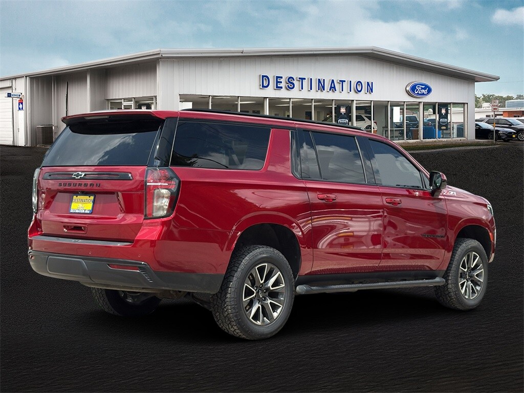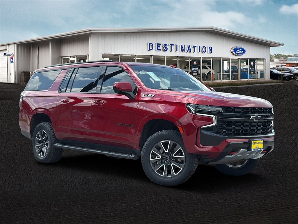 This 2023 Chevrolet Suburban Z71 in Radiant Red Tintcoat comes with the following features: EcoTec3 5.3L V8 10-Speed Automatic with Overdrive 4WD License Plate Front Mounting Package, Preferred Equipment Group 2Z7 (10-Way Power Driver & Passenger Seat Adjusters, 1st & 2nd Row Color-Keyed Carpeted Floor Mats, 2-Speed Active Electronic AutoTrac Transfer Case, Auto-Dimming Inside Rear-View Mirror, Black Tubular Assist Steps, Bose 9-Speaker Stereo Audio System Feature, Bright Front & Rear Door Sill Plates, Color-Keyed Carpeting Floor Covering, Driver & Front Outboard Passenger Airbags, Enhanced Driver Information Center, Floor Console w/Storage Area, Front High-Approach Angle Fascia, Hands-Free Rear Power Programmable Liftgate, Heated Driver & Front Passenger Seats, Heavy-Duty Air Filter, Hill Descent Control, Infotainment Display, LED Daytime Running Lamps, Memory Settings For Driver, Red Recovery Hooks, Remote Start, SiriusXM Radio w/360L, Universal Home Remote, Wireless Charging, and Wrapped Steering Wheel), 1st & 2nd Rows All-Weather Floor Liners (LPO), 2nd Row Manual Bucket Seats, 3.23 Rear Axle Ratio, 3rd row seats: split-bench, 4-Wheel Disc Brakes, 9 Speakers, ABS brakes, Air Conditioning, All-Weather Cargo Mat (LPO), Alloy wheels, AM/FM radio: SiriusXM with 360L, Apple CarPlay/Android Auto, Auto High-beam Headlights, Auto-dimming Rear-View mirror, Automatic temperature control, Brake assist, Bumpers: body-color, Compass, Delay-off headlights, Driver door bin, Driver vanity mirror, Dual front impact airbags, Dual front side impact airbags, Dual-Pane Power Panoramic Sunroof, Electronic Stability Control, Emergency communication system: OnStar and Chevrolet connected services capable, Four wheel independent suspension, Front anti-roll bar, Front Bucket Seats, Front Center Armrest, Front dual zone A/C, Front reading lights, Fully automatic headlights, Garage door transmitter, Heated door mirrors, Heated front seats, Illuminated entry, Leather-Appointed Seating, Low tire pressure warning, Memory seat, Navigation System, Occupant sensing airbag, Outside temperature display, Overhead airbag, Overhead console, Panic alarm, Passenger door bin, Passenger vanity mirror, Power door mirrors, Power driver seat, Power Liftgate, Power passenger seat, Power steering, Power windows, Premium audio system: Chevrolet Infotainment 3 Premium, Premium Smooth Ride Suspension, Radio: Chevrolet Infotainment 3 Premium System, Rain sensing wipers, Rear air conditioning, Rear anti-roll bar, Rear reading lights, Rear seat center armrest, Rear window defroster, Rear window wiper, Remote keyless entry, Roof rack: rails only, Security system, Speed control, Speed-sensing steering, Split folding rear seat, Spoiler, Steering wheel mounted audio controls, Tachometer, Telescoping steering wheel, Tilt steering wheel, Traction control, Trip computer, Variably intermittent wipers, Voltmeter, and Wheels: 20" x 9" Machined Aluminum.