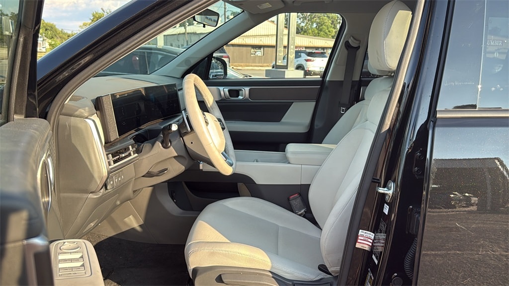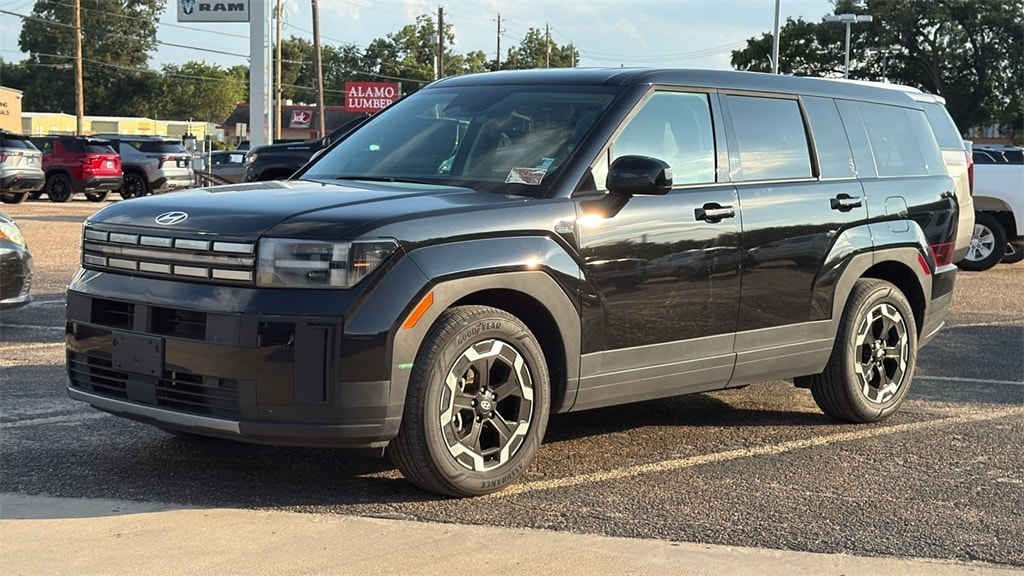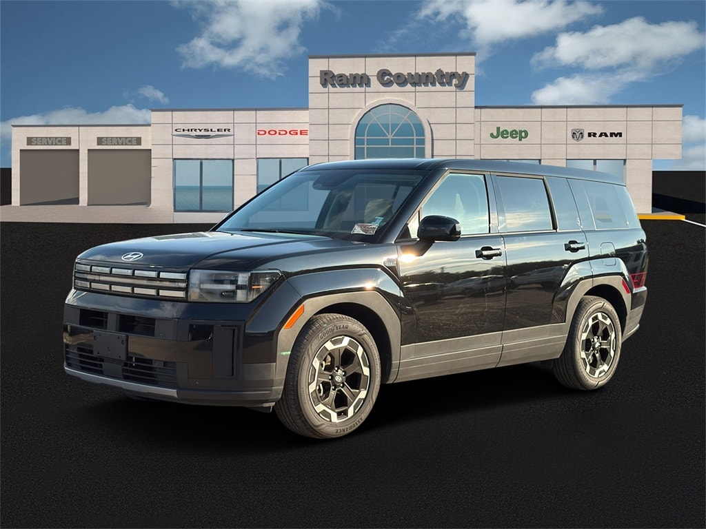 This 2025 Hyundai Santa Fe SE in Phantom Black comes with the following features: 2.5L I4 Shiftronic FWD Option Group 01, Gray Cloth, 18" x 7.5J Alloy Wheels, Brake assist, Cargo Cover, Dual front side impact airbags, Front reading lights, Low tire pressure warning, Outside temperature display, Overhead airbag, Power Liftgate, Power steering, Radio: AM/FM/HD Display Audio, Rear seat center armrest, Split folding rear seat, Steering wheel mounted audio controls, Tachometer, Traction control, Trip computer, 3rd row seats: bench, 4-Wheel Disc Brakes, 6 Speakers, ABS brakes, Air Conditioning, Alloy wheels, AM/FM radio: SiriusXM, Apple CarPlay & Android Auto, Auto High-beam Headlights, Bumpers: body-color, Cargo Blocks, Cargo Net, Carpeted Floor Mats, Delay-off headlights, Driver door bin, Driver vanity mirror, Dual front impact airbags, Electronic Stability Control, Emergency communication system, Exterior Parking Camera Rear, Four wheel independent suspension, Front anti-roll bar, Front Bucket Seats, Front Center Armrest, Fully automatic headlights, Heated door mirrors, Illuminated entry, Knee airbag, Leather steering wheel, Occupant sensing airbag, Overhead console, Panic alarm, Passenger door bin, Passenger vanity mirror, Power door mirrors, Power windows, Rear anti-roll bar, Rear side impact airbag, Rear window defroster, Rear window wiper, Remote keyless entry, Roadside Assistance Kit, Security system, Severe Weather Kit, Speed control, Speed-sensing steering, Spoiler, Telescoping steering wheel, Tilt steering wheel, Variably intermittent wipers, and YES Essentials Stain-Resistant Cloth Seat Trim.