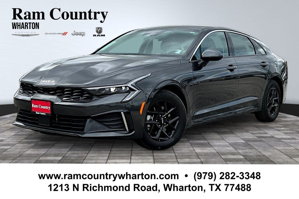 This 2025 Kia K5 LXS in Interstellar Gray comes with the following features: I4 8-Speed Automatic FWD 4-Wheel Disc Brakes, 6 Speakers, ABS brakes, Air Conditioning, Alloy wheels, AM/FM radio: SiriusXM, Auto High-beam Headlights, Automatic temperature control, Brake assist, Bumpers: body-color, Carpeted Floor Mats, Cloth Seat Trim, Delay-off headlights, Driver door bin, Driver vanity mirror, Dual front impact airbags, Dual front side impact airbags, Electronic Stability Control, Emergency communication system: Kia Connect (includes 1 year free trial), Four wheel independent suspension, Front anti-roll bar, Front Bucket Seats, Front Center Armrest, Front dual zone A/C, Front reading lights, Fully automatic headlights, Heated door mirrors, Illuminated entry, Knee airbag, Low tire pressure warning, Occupant sensing airbag, Outside temperature display, Overhead airbag, Overhead console, Panic alarm, Passenger door bin, Passenger vanity mirror, Power door mirrors, Power steering, Power windows, Radio data system, Radio: AM/FM Audio System, Rear anti-roll bar, Rear seat center armrest, Rear side impact airbag, Rear window defroster, Remote keyless entry, Security system, Speed control, Speed-sensing steering, Split folding rear seat, Steering wheel mounted audio controls, Tachometer, Telescoping steering wheel, Tilt steering wheel, Traction control, Trip computer, Variably intermittent wipers, and Wheels: 16" x 6.5J Gloss Black Alloy.