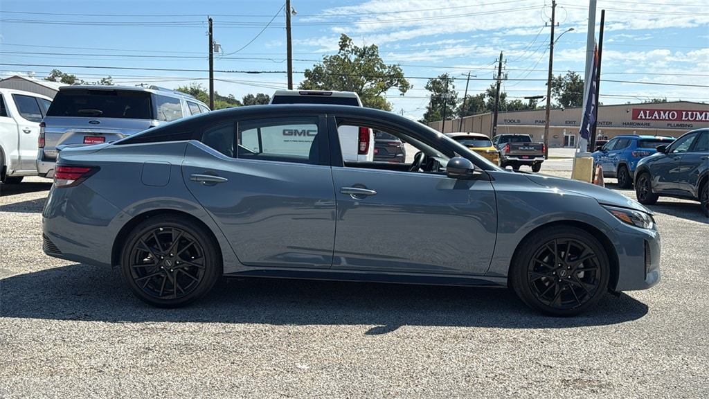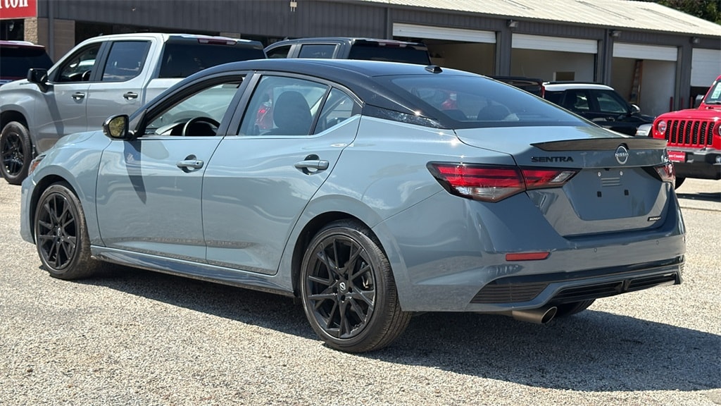 This 2025 Nissan Sentra SR in Atlantic Gray Metallic/Super Black comes with the following features: 2.0L I4 DOHC CVT with Xtronic FWD Midnight Edition (18" Black Alloy Wheels, Black Exterior Badging, Black Painted V-Motion Grille, Rear Spoiler, and Side Sills), CVT with Xtronic, Sport Cloth, 4-Wheel Disc Brakes, AM/FM radio: SiriusXM, Automatic temperature control, Blind Spot Warning, Brake assist, Delay-off headlights, Driver door bin, Dual front side impact airbags, Illuminated entry, Power steering, Radio: AM/FM w/RDS/MP3/Aux-In, Rear Parking Sensors, Rear side impact airbag, Rear window defroster, Remote keyless entry, 18" Alloy Wheels, 8 Speakers, ABS brakes, Air Conditioning, Alloy wheels, Auto High-beam Headlights, Bumpers: body-color, Driver vanity mirror, Dual front impact airbags, Electronic Stability Control, Four wheel independent suspension, Front anti-roll bar, Front Bucket Seats, Front Center Armrest, Front dual zone A/C, Front reading lights, Fully automatic headlights, Heated door mirrors, Heated Front Bucket Seats, Heated front seats, Knee airbag, Leather Shift Knob, Low tire pressure warning, NissanConnect featuring Apple CarPlay and Android Auto, Occupant sensing airbag, Outside temperature display, Overhead airbag, Overhead console, Panic alarm, Passenger door bin, Passenger vanity mirror, Power door mirrors, Power windows, Radio data system, Rear anti-roll bar, Rear seat center armrest, Security system, Speed control, Speed-sensing steering, Split folding rear seat, Spoiler, Sport Cloth Seat Trim, Steering wheel mounted audio controls, Tachometer, Telescoping steering wheel, Tilt steering wheel, Traction control, Trip computer, Turn signal indicator mirrors, and Variably intermittent wipers. 2025 Nissan Sentra SR