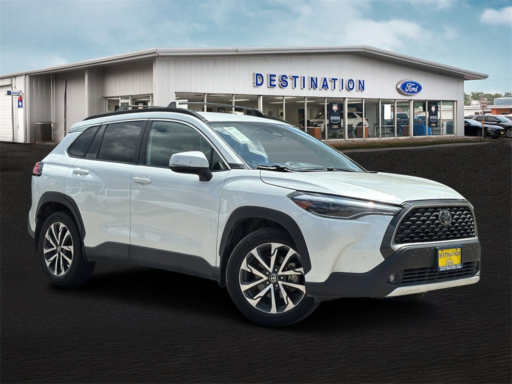 This 2023 Toyota Corolla Cross XLE in Pearl comes with the following features: 2.0L I4 PDI DOHC 16V LEV3-SULEV30 169hp CVT FWD 2.0L I4 PDI DOHC 16V LEV3-SULEV30 169hp, ABS brakes, AM/FM radio: SiriusXM, Automatic temperature control, Brake assist, Delay-off headlights, Emergency communication system: Safety Connect (10-year trial), Exterior Parking Camera Rear, Fully automatic headlights, Heated front seats, Occupant sensing airbag, Outside temperature display, Power windows, Radio: 8" Toyota Multimedia, Rear seat center armrest, Rear window defroster, Roof rack: rails only, Split folding rear seat, Steering wheel mounted audio controls, Traction control, Turn signal indicator mirrors, 4-Wheel Disc Brakes, 4.014 Axle Ratio, 6 Speakers, Air Conditioning, Alloy wheels, Auto High-beam Headlights, Auto-dimming Rear-View mirror, Bumpers: body-color, Driver door bin, Driver vanity mirror, Dual front impact airbags, Dual front side impact airbags, Electronic Stability Control, Front anti-roll bar, Front Bucket Seats, Front Center Armrest, Front dual zone A/C, Front fog lights, Front reading lights, Front wheel independent suspension, Heated door mirrors, Heated Front Bucket Seats, Illuminated entry, Knee airbag, Leather Shift Knob, Leather steering wheel, Low tire pressure warning, Overhead airbag, Panic alarm, Passenger door bin, Passenger vanity mirror, Power door mirrors, Power driver seat, Power steering, Radio data system, Rear anti-roll bar, Rear side impact airbag, Rear window wiper, Remote keyless entry, Softex Synthetic Leather Seat Trim, Speed control, Spoiler, Tachometer, Telescoping steering wheel, Tilt steering wheel, Trip computer, Variably intermittent wipers, and Wheels: 18" Alloy w/Black-Painted Machine-Finish.